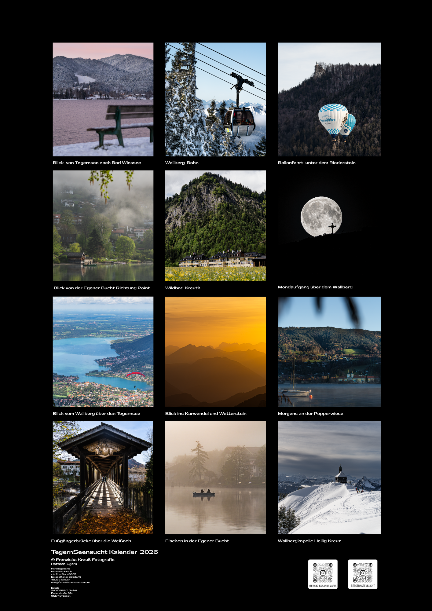 Mein TegernSeensucht-Kalender nimmt Dich mit auf eine visuelle Reise rund um den Tegensee: Von nebelverhangenen Morgenstunden über goldene Herbsttage bis hin zu glitzernden Wintertagen.